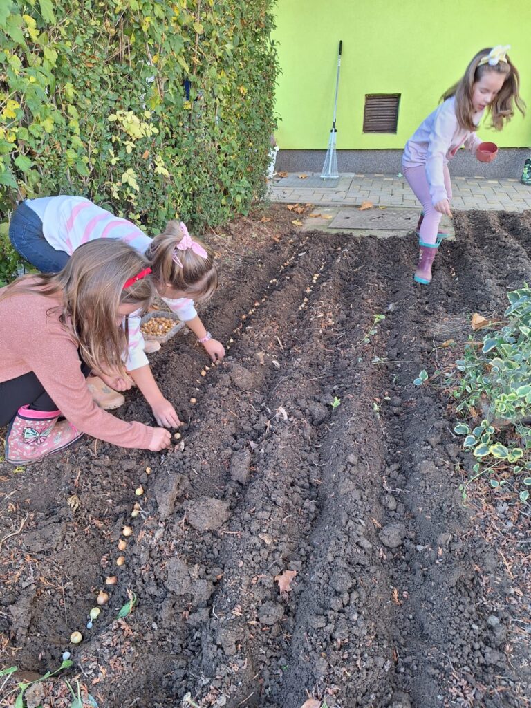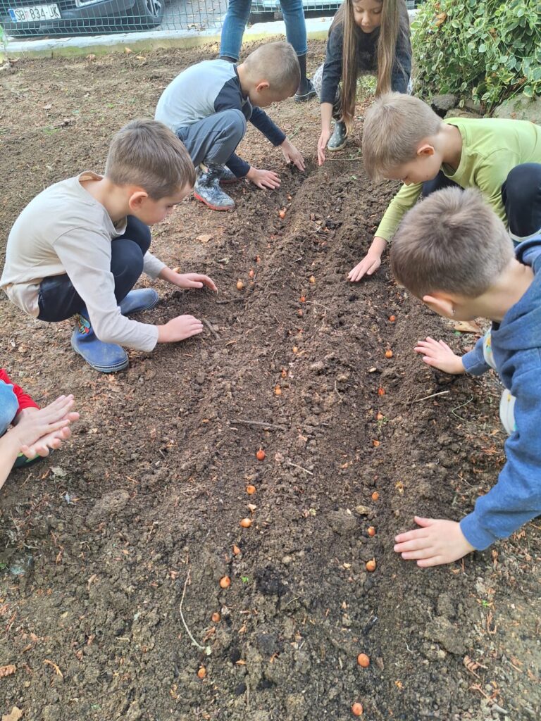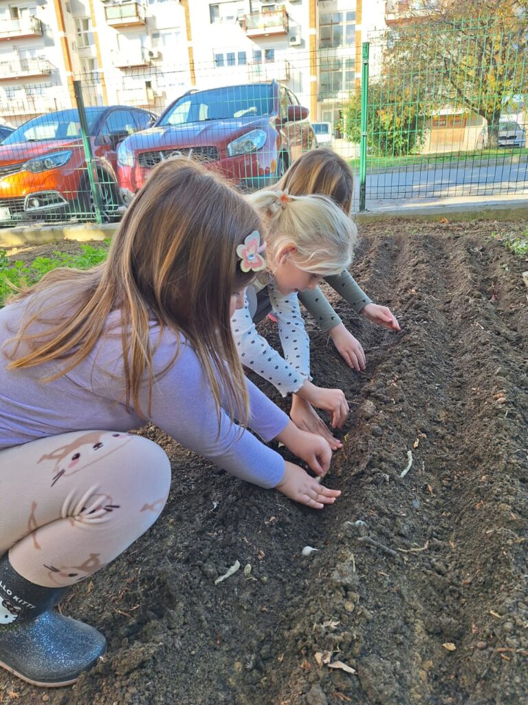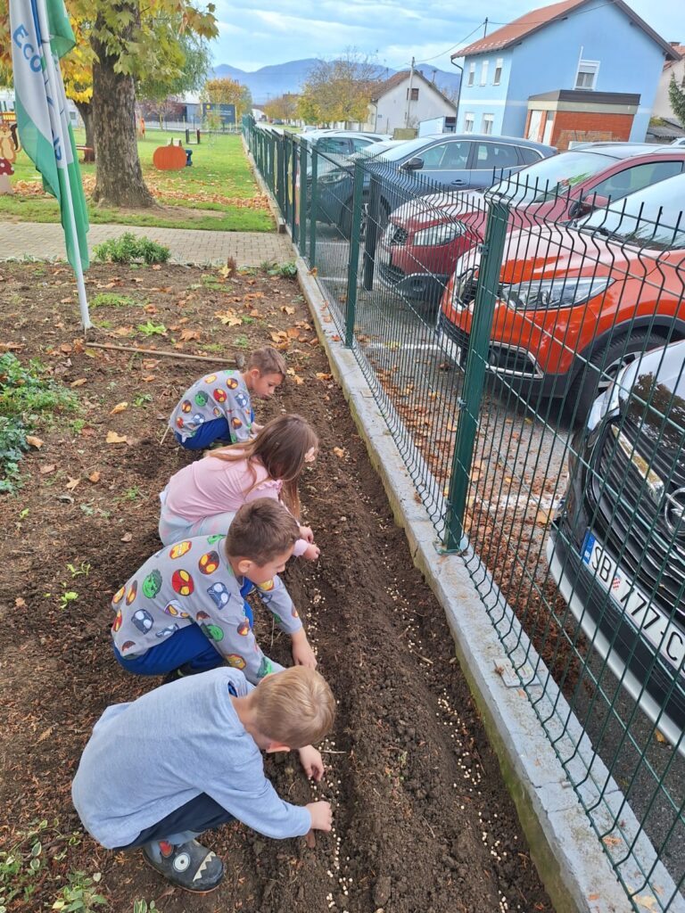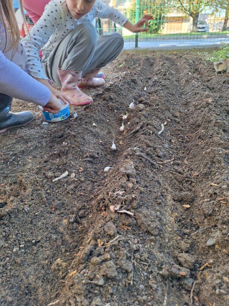 U mjesecu listopadu, djeca skupine “Ivančice” su očistila vrt i pripremila tlo za sadnju. Ove jeseni smo u naš vrt zasadili luk, češnjak, grašak i salatu. Prve plodove očekujemo da ćemo konzumirati već prije Božića, a napredak biljki je već sada vidljiv u priloženim fotografijama.