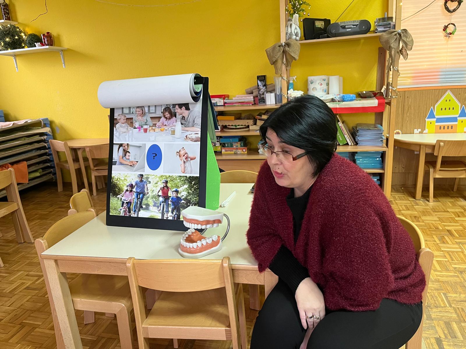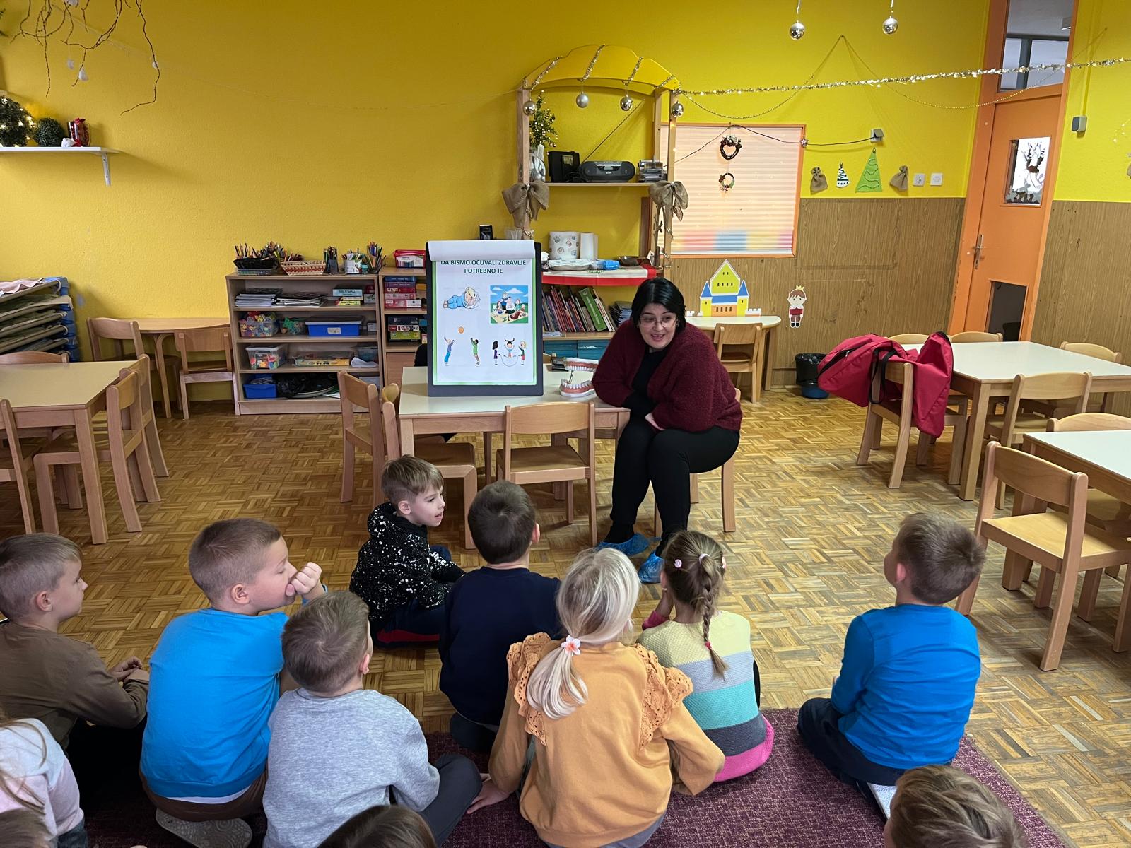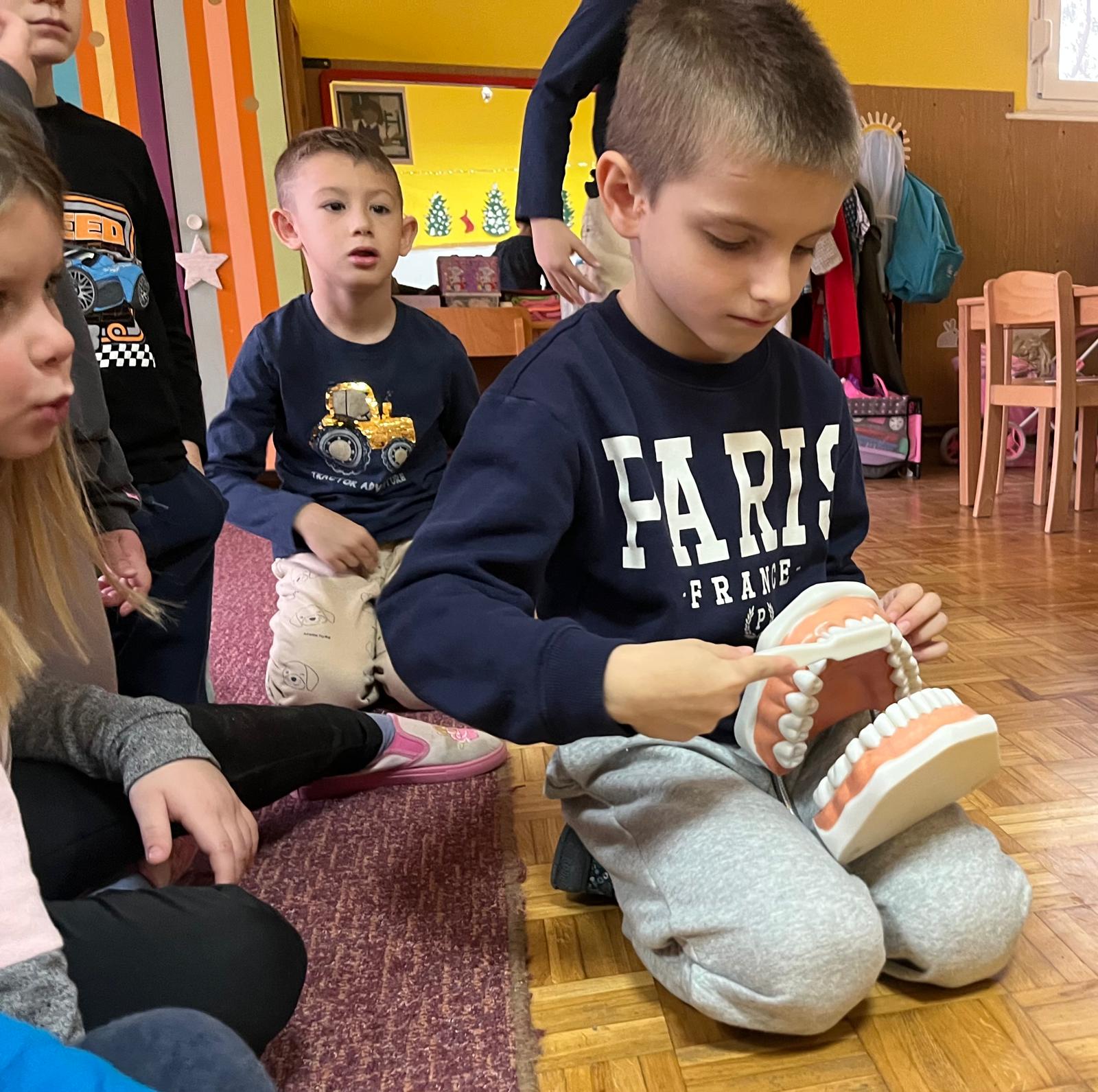 U goste nam je došla patronažna sestra iz Doma zdravlja Slavonski Brod, koja je djeci na jednostavan i zanimljiv način pokazala pravilan postupak pranja zubi. Djeca su postavljala pitanja i rado sudjelovala u praktičnoj demonstraciji.