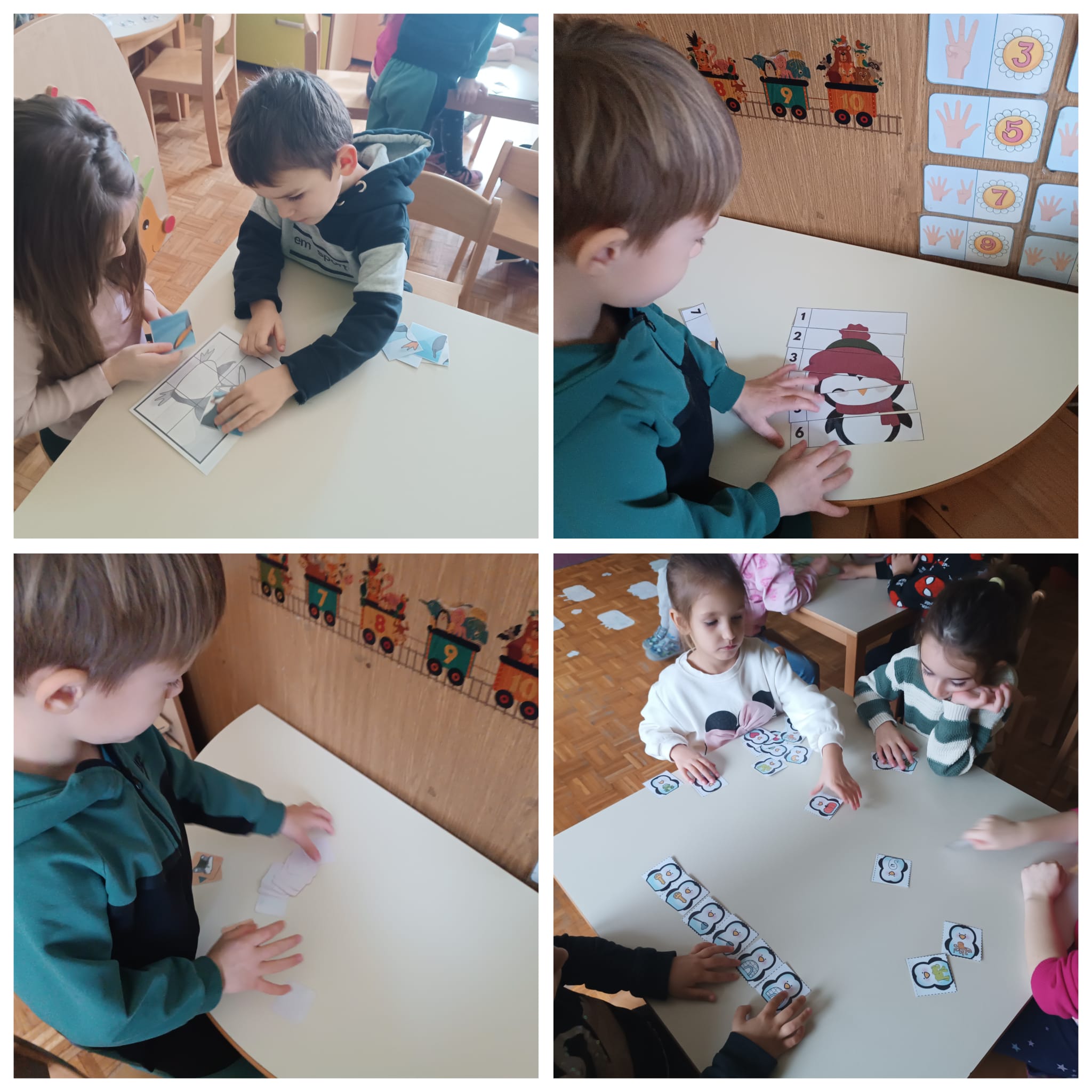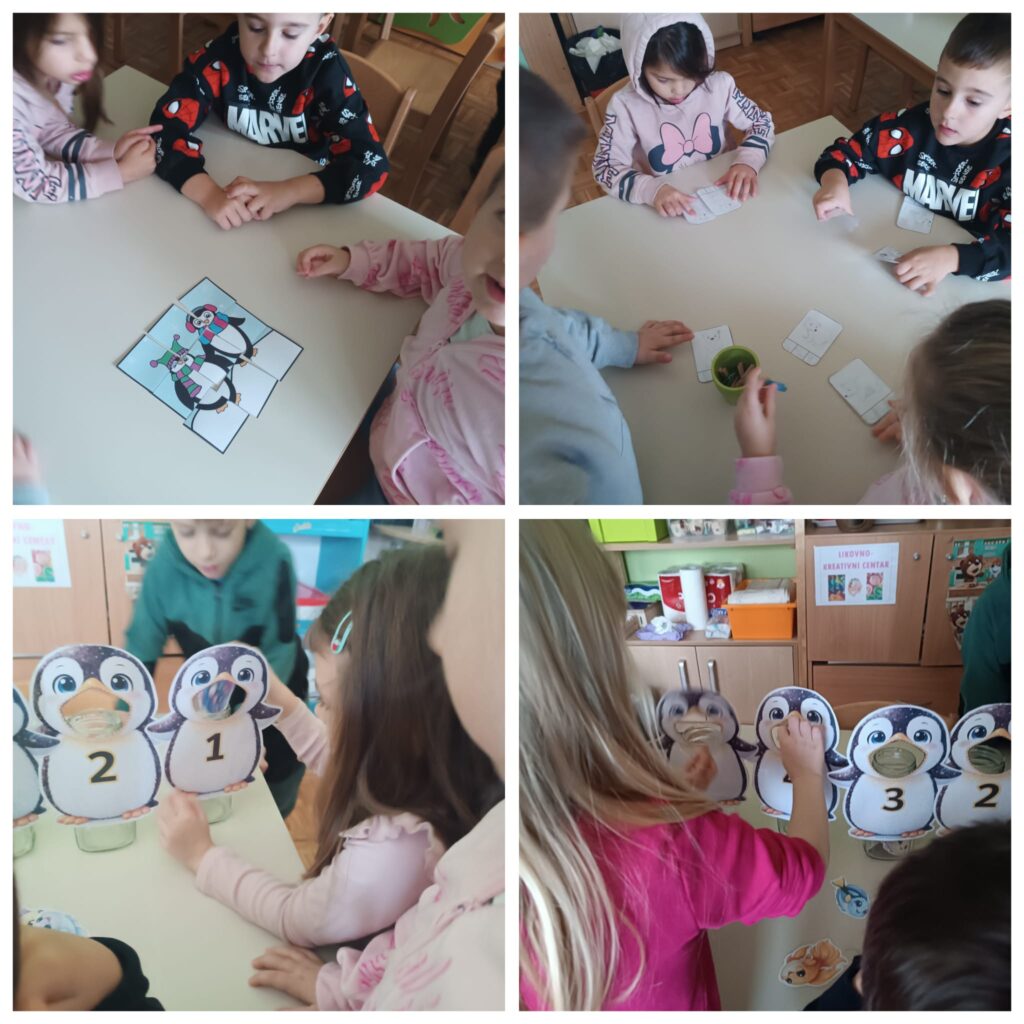 Pingvin je djecu uveo i u jutarnju tjelovježbu s Južnog pola, što je bilo vrlo zabavno i motivirajuće. Nakon toga uslijedile su razne aktivnosti: pecanje ribica, matematičke manipulativne igre, hranjenje pingvina ribicama te igre pamćenja (memory). Kroz ove aktivnosti djeca su razvijala motoričke, spoznajne i socijalne vještine.