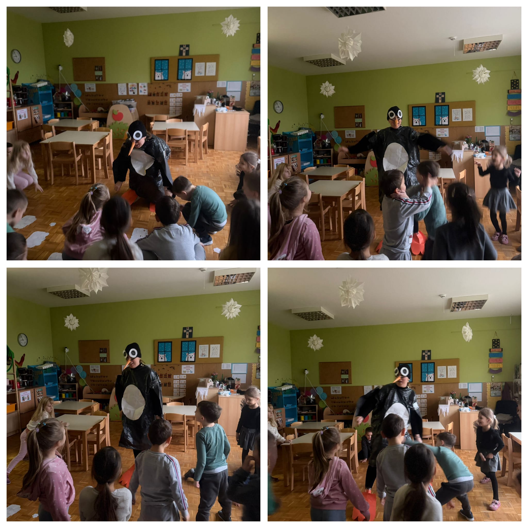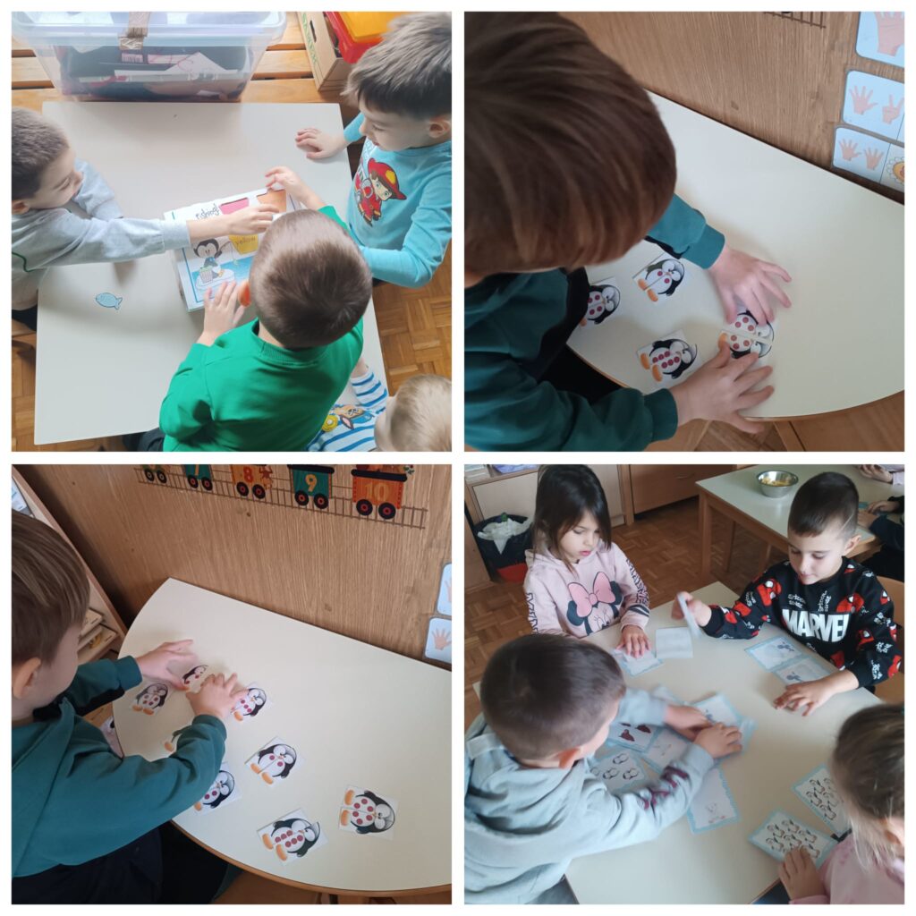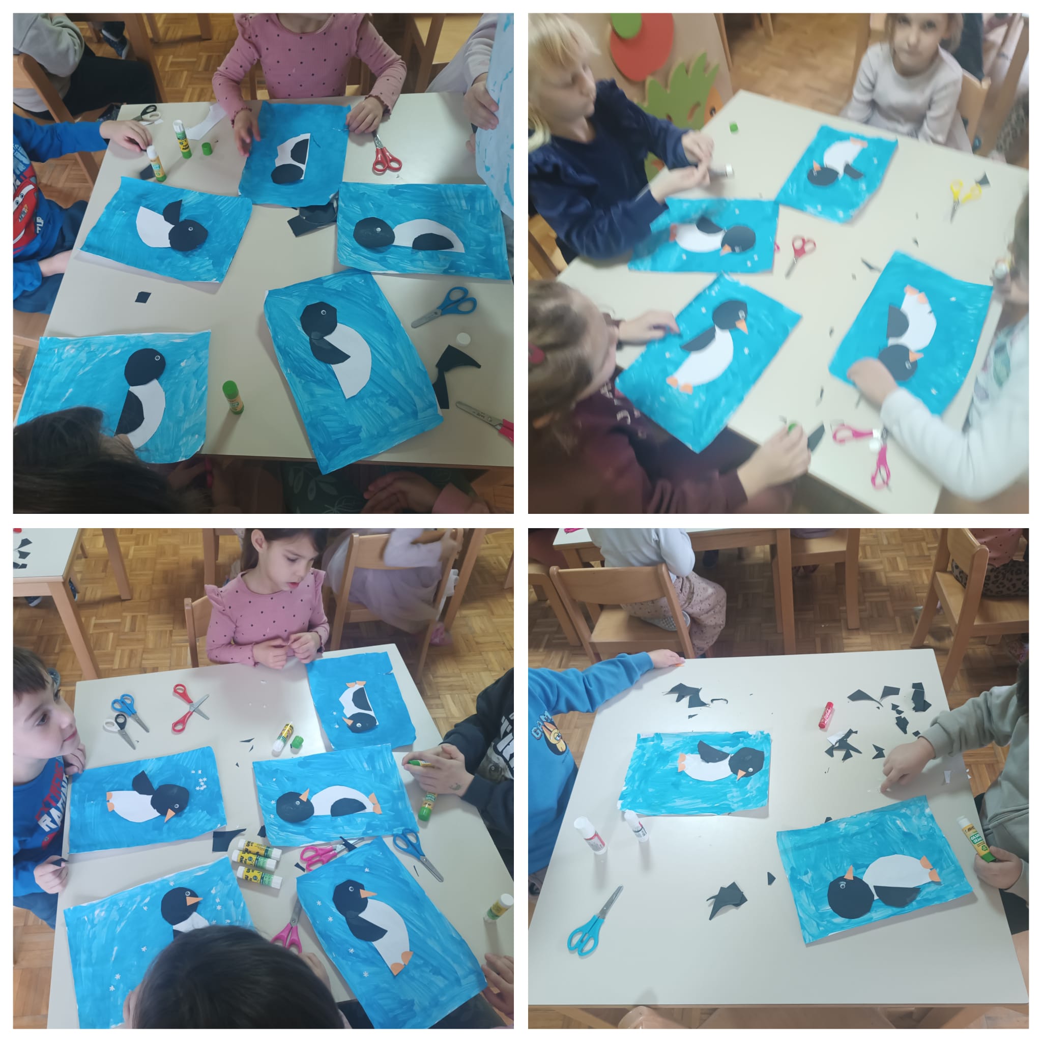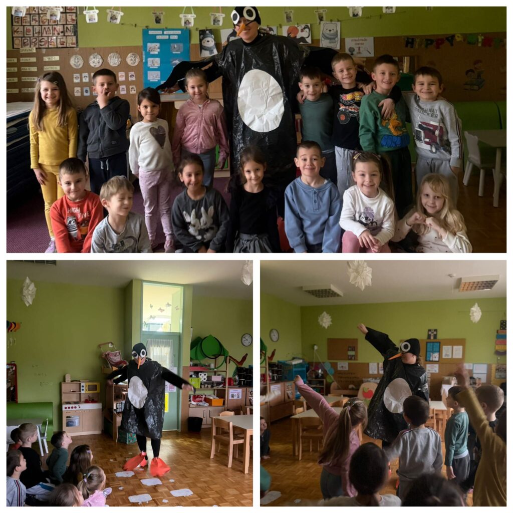 Djeca su s velikim interesom proučavala pingvine, njihovo stanište i način života. Čitali smo slikovnice na tu temu, a posebno ih je oduševila priča „Ne baš savršeni pingvin“. Priča je djeci bila vrlo zabavna – smijali su se, uživjeli u radnju, prepričavali događaje i tražili da je više puta ponovno pročitamo.