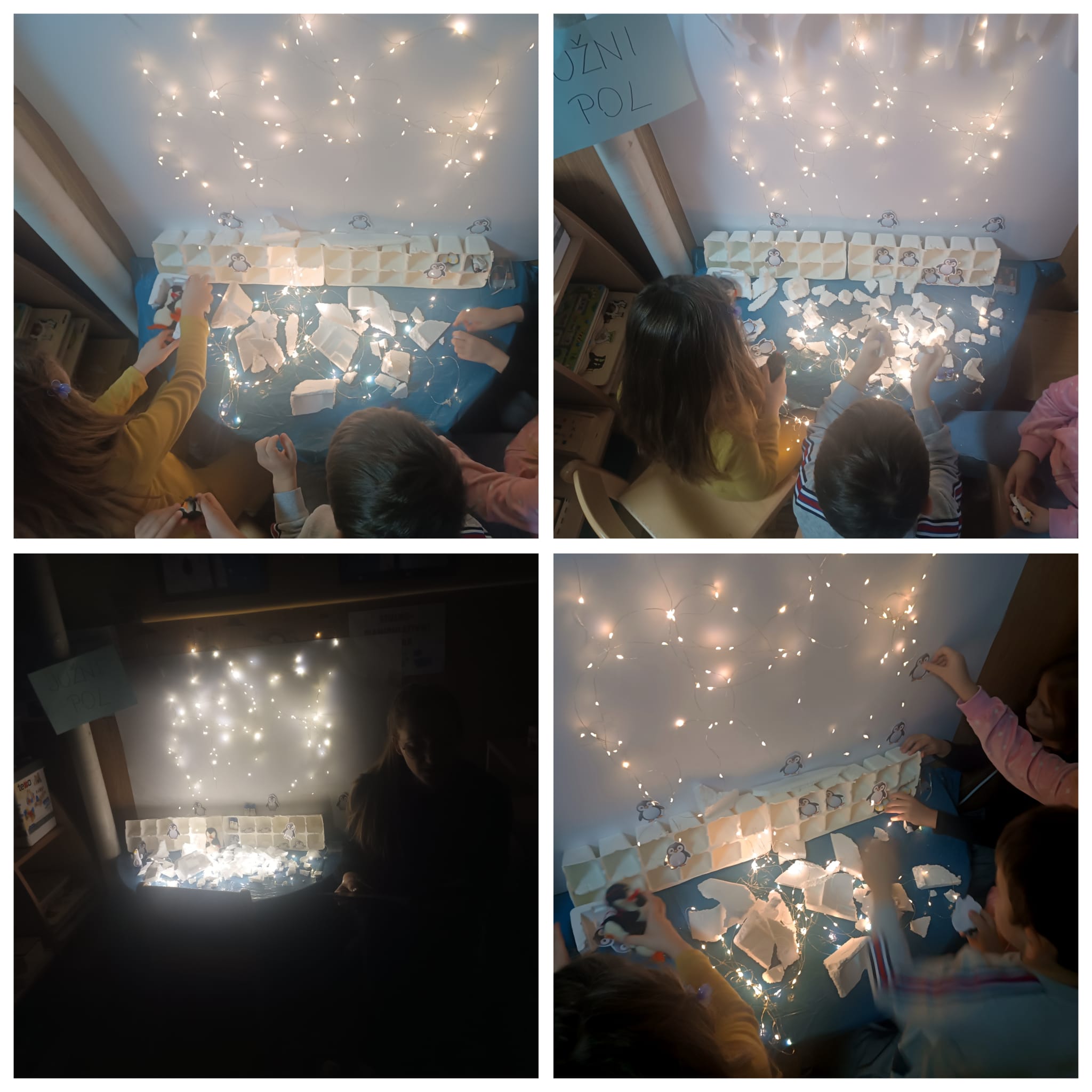 U likovnim aktivnostima izrađivali smo pingvine od kolaža i tempere, pri čemu su djeca pokazala kreativnost, strpljenje i veliku zainteresiranost za temu. Tijekom cijelog tjedna djeca su aktivno sudjelovala, istraživala, promatrala i učila kroz igru.