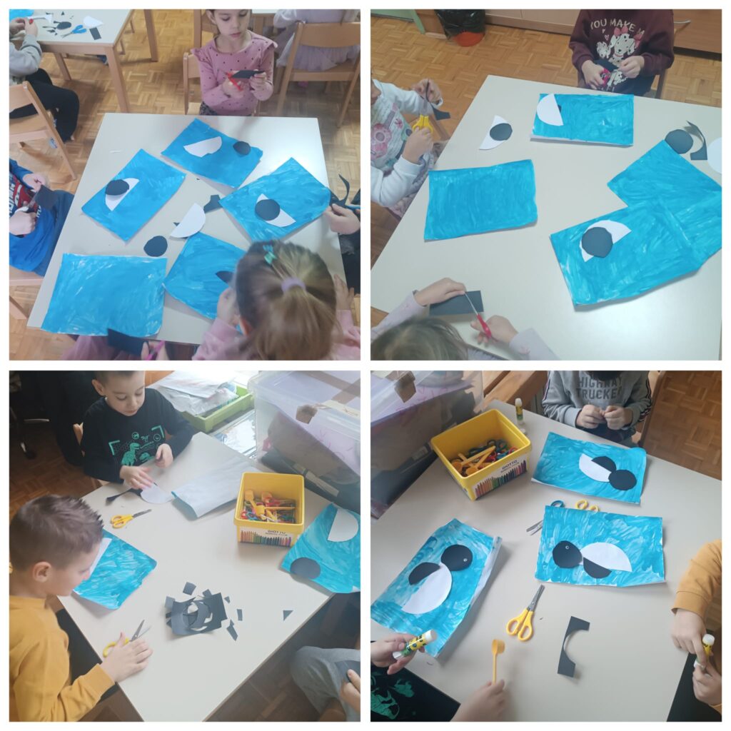 Likovi iz priče potaknuli su djecu na crtanje i likovno izražavanje, a kroz razgovor su pokazala koliko su razumjela i zapamtila sadržaj. Posebno uzbuđenje nastalo je kada nas je pingvin posjetio u sobi. Djeca su bila oduševljena, postavljala su mu brojna pitanja i aktivno sudjelovala u razgovoru.