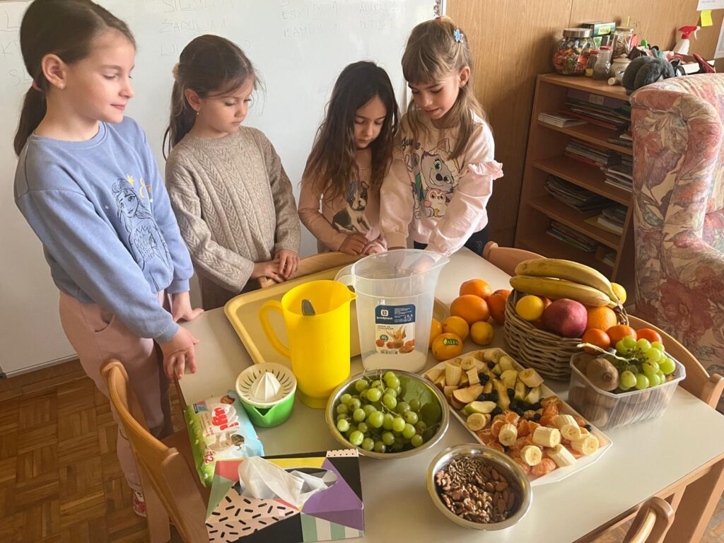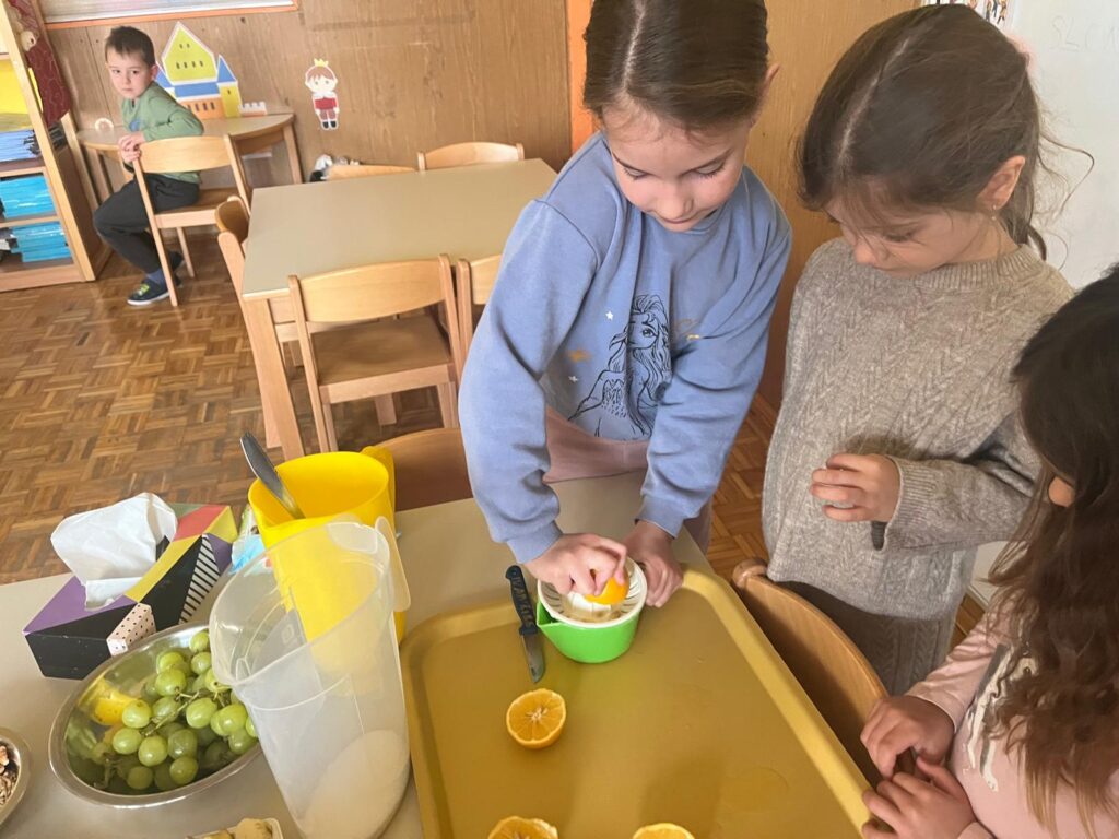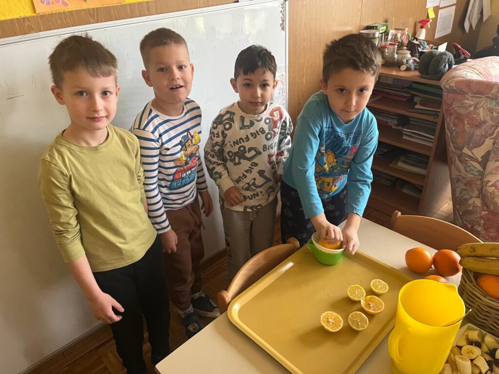 Kroz ovaj tjedan, “Ivančice” obrađuju temu: “Razvijanje svjesnosti i praktičnih vještina za očuvanje vlastita zdravlja”. Kroz životno- praktične aktivnosti, vježbali smo guljenje, rezanje, cijeđenje voća. Kušanjem voća i orašastih plodova određivali smo mirise, okuse, boje. Razgovarali smo o fizičkim aktivnostima, redovnim odlascima liječniku i stomatologu te održavanju osobne higijene i utjecajima ovih faktora na naše zdravlje.