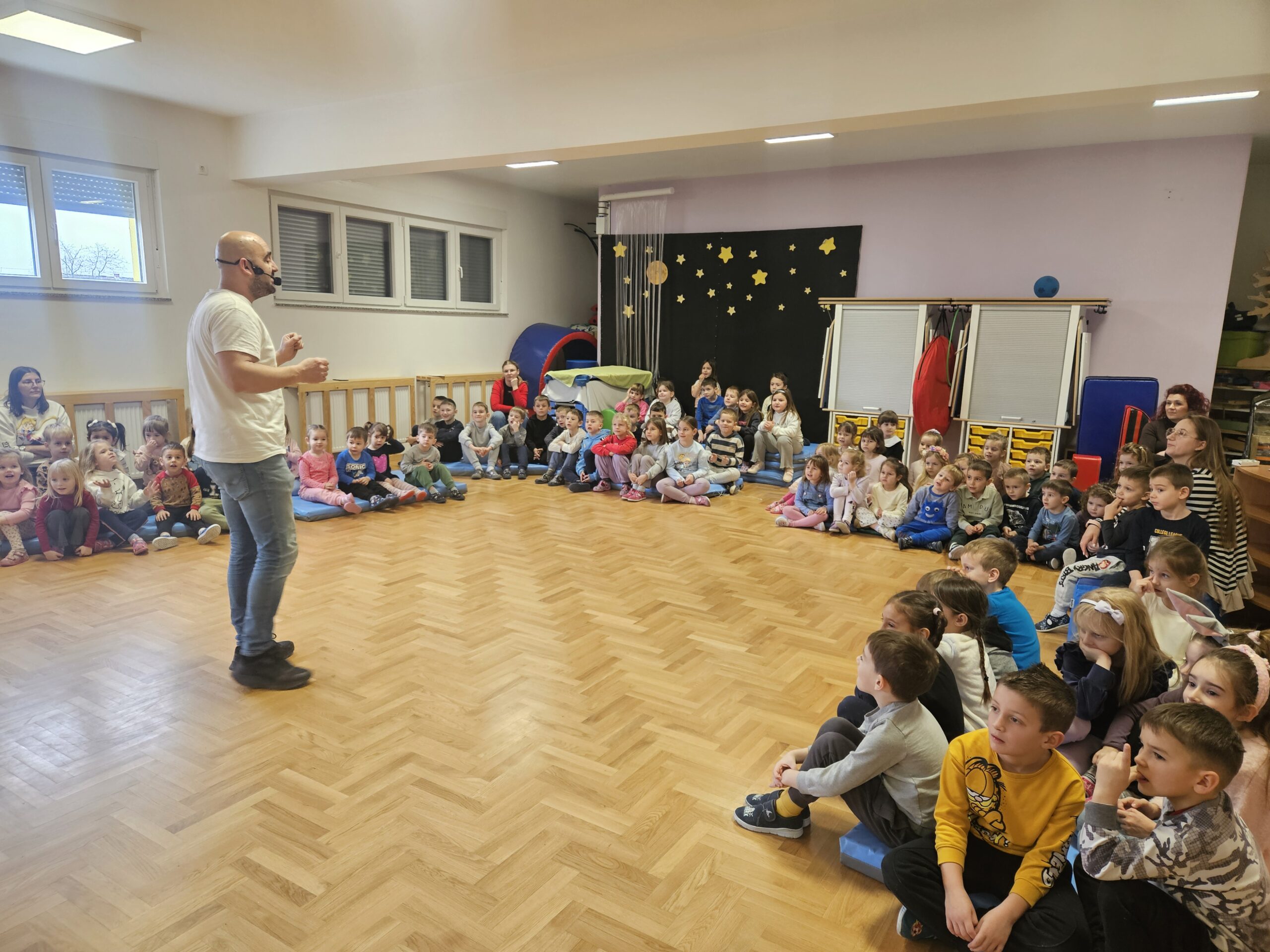 Danas je u našem vrtiću gostovala Produkcija Z s kazališnom predstavom „Šumska priča“, koja je razveselila djecu i ispunila naš prostor smijehom i veseljem. Kroz zanimljivu i poučnu priču o šumskim životinjama, djeca su imala priliku učiti o prijateljstvu, suradnji i brizi za prirodu. Predstava je bila interaktivna, prilagođena dječjem uzrastu, a mali gledatelji su s velikim zanimanjem pratili radnju i aktivno sudjelovali u pojedinim dijelovima. Zahvaljujemo Produkciji Z na lijepom gostovanju i veselimo se novim susretima s kazališnom umjetnošću.