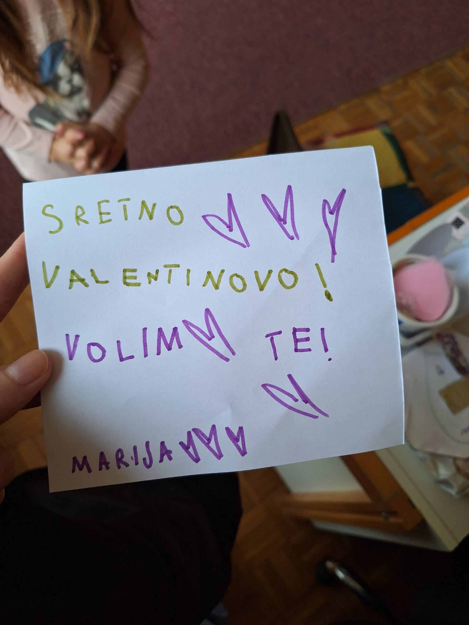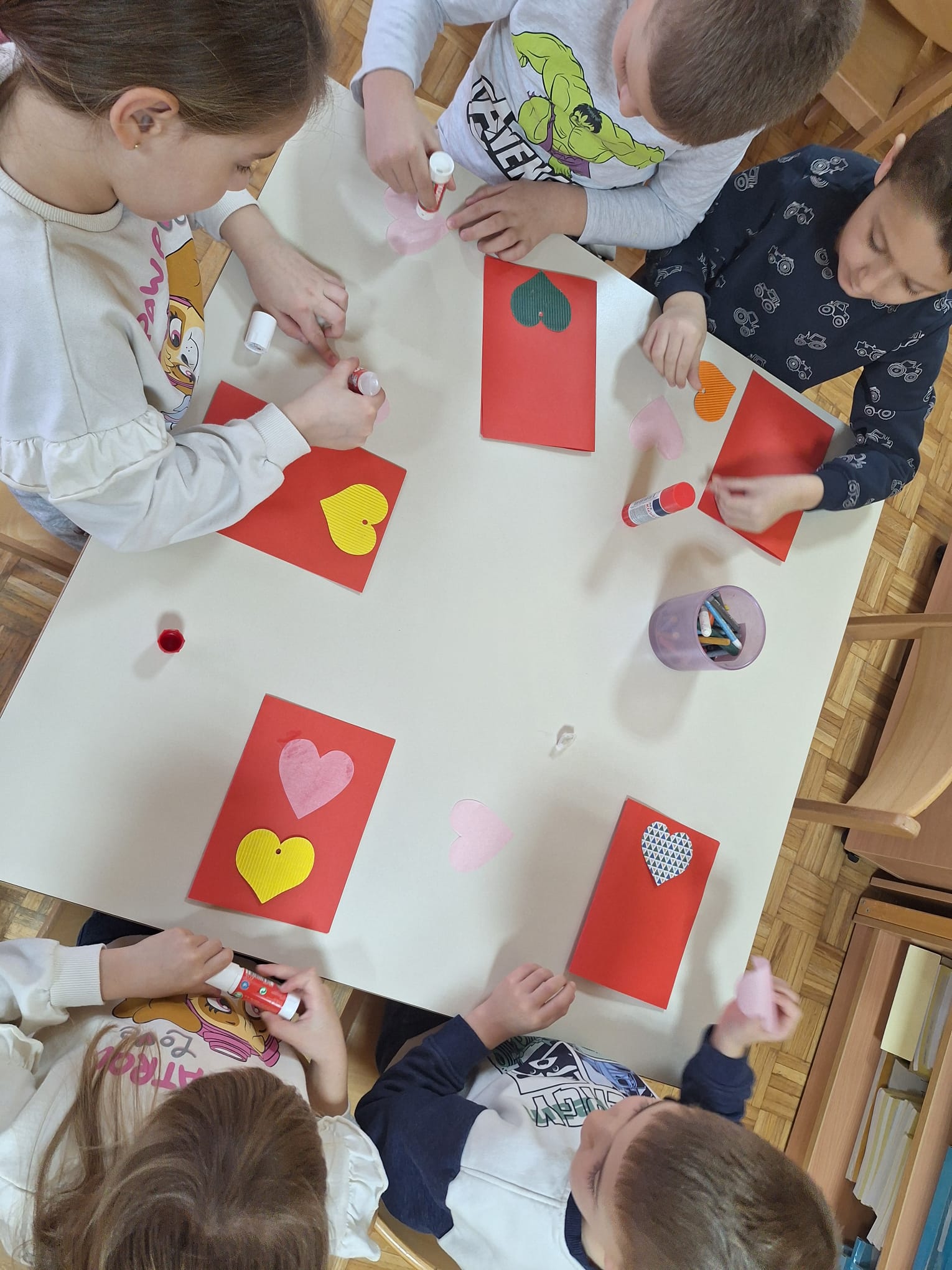 Tijekom ovoga tjedna, u našoj skupini smo obrađivali temu: “Ljubav”. Kroz razne aktivnosti razvijali smo pozitivnu sliku o sebi i drugima, poticali na suosjećanje, dijelili i poklanjali. Učili smo o osjećajima i na koje načine ih iskazati. Poticali smo na prihvatljivo rješavanje problemskih situacija. Svoje predčitalačke vještine smo nadograđivali, a najviše zabave je bilo u likovnim i dramskim aktivnostima.