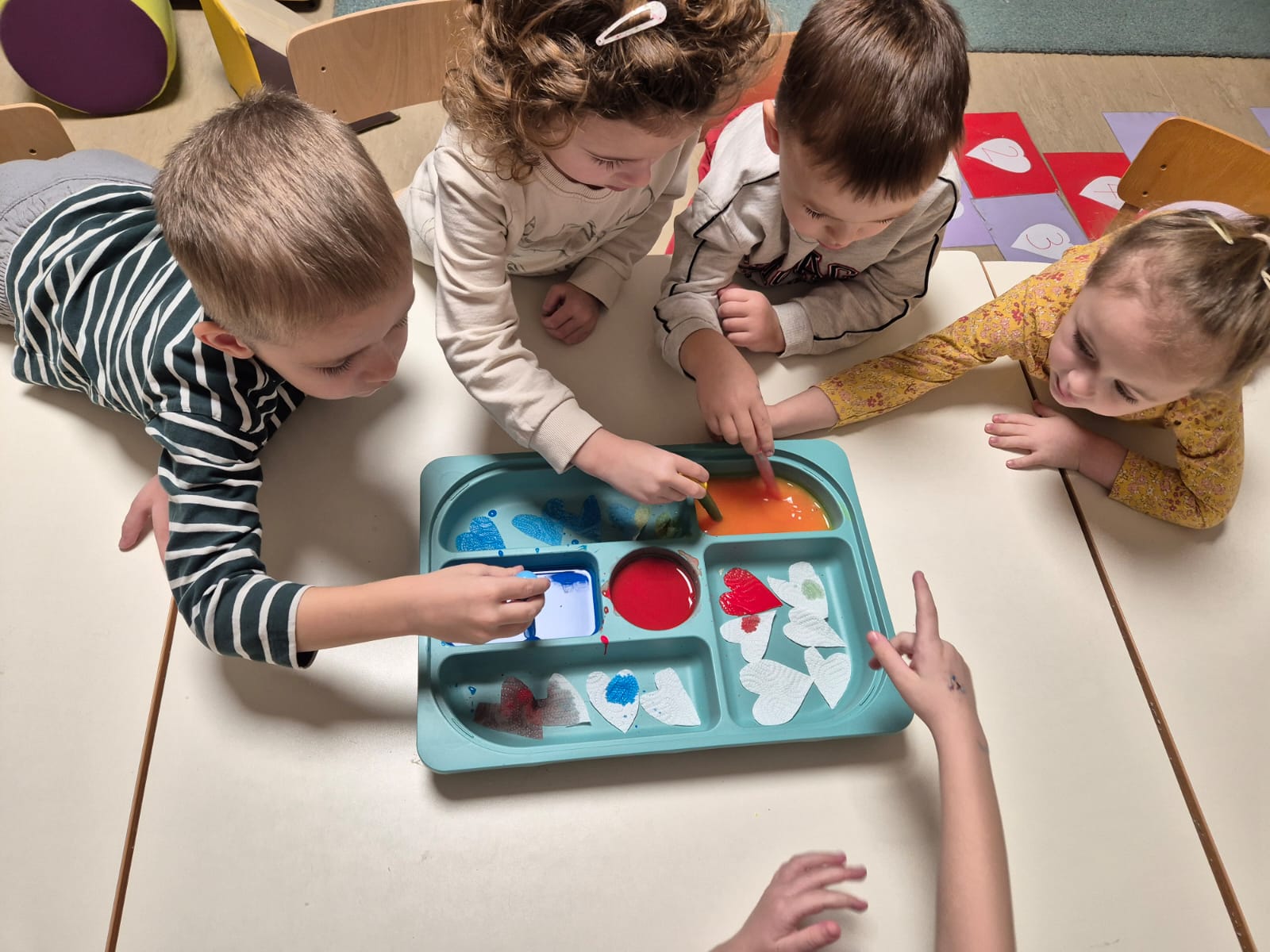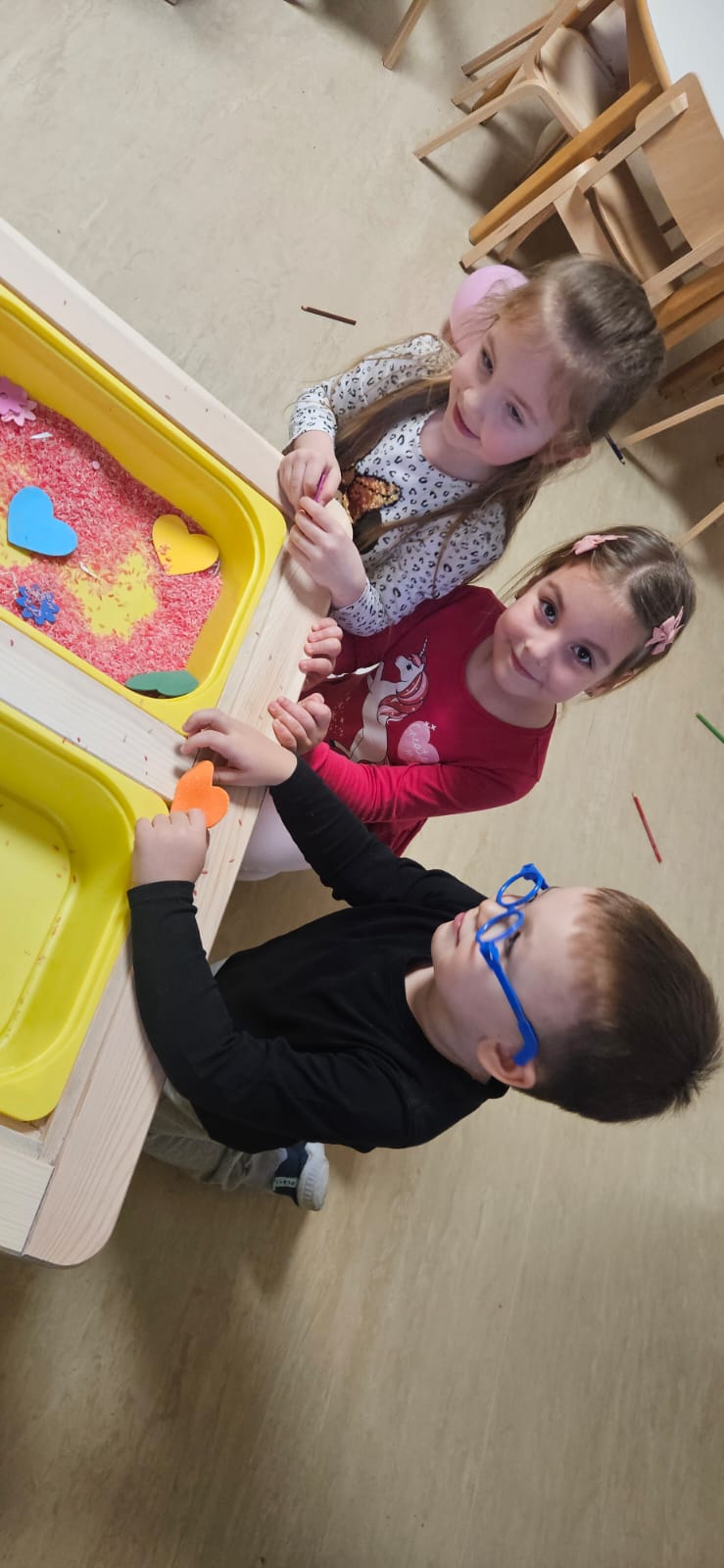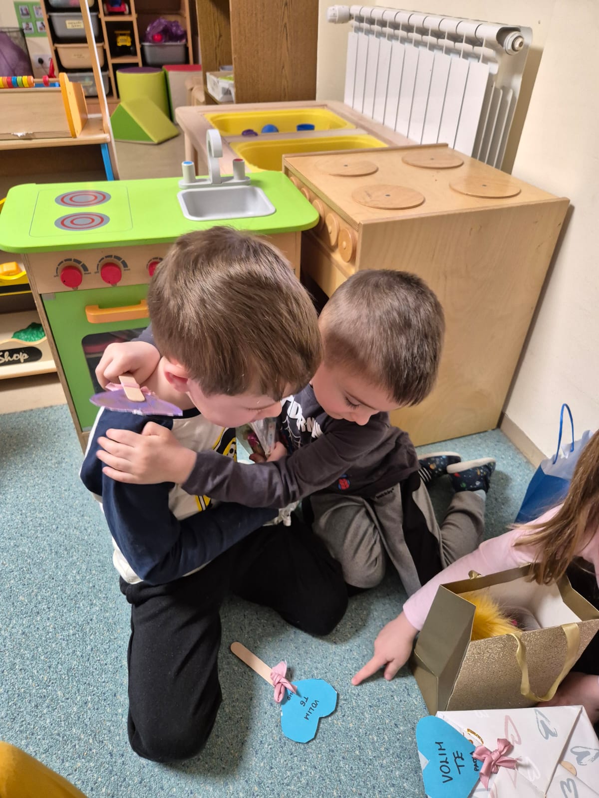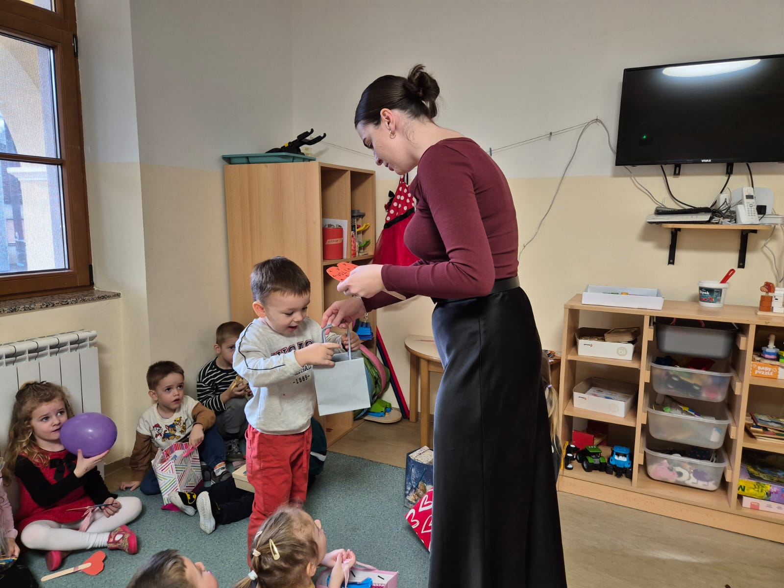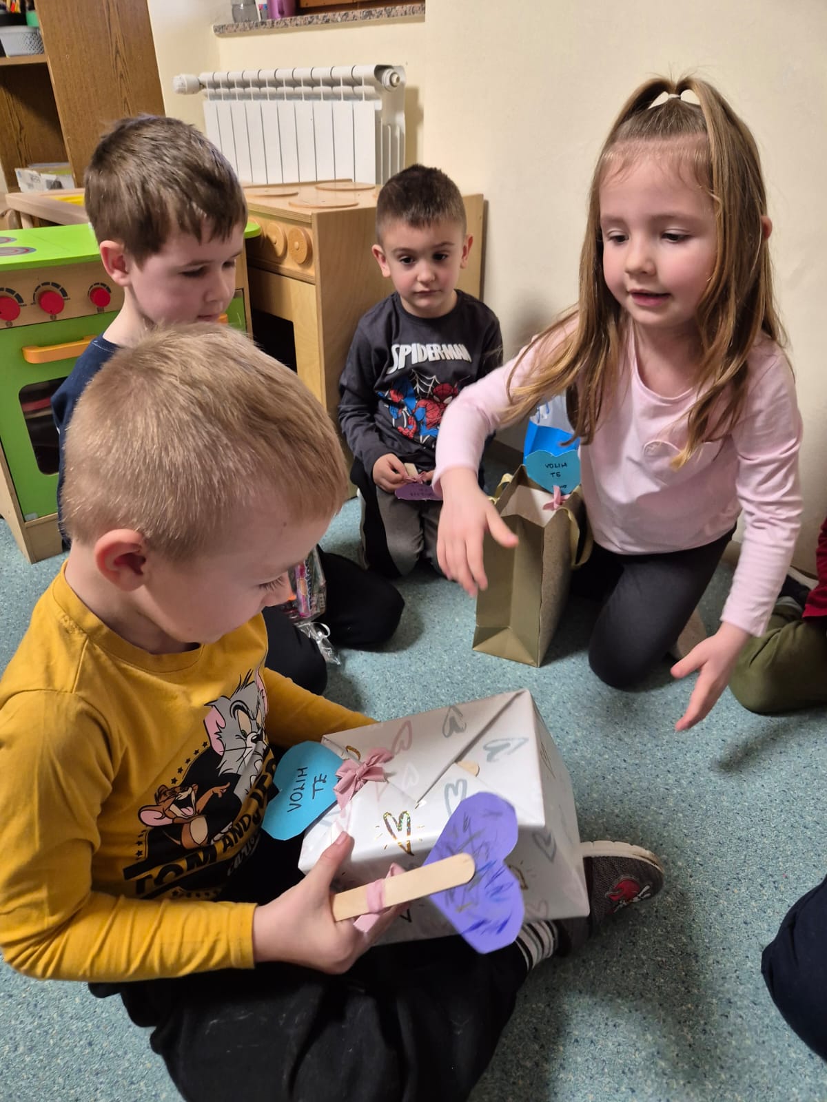 Kroz likovne, glazbene i društvene igre učili smo kako pokazati pažnju i zahvalnost, a prostor naše sobe ispunili smo crvenim i ružičastim detaljima, osmijesima i veseljem. Djeca su s velikim uzbuđenjem i zahvalnošću poklanjala i primala poklone svojih prijatelja.