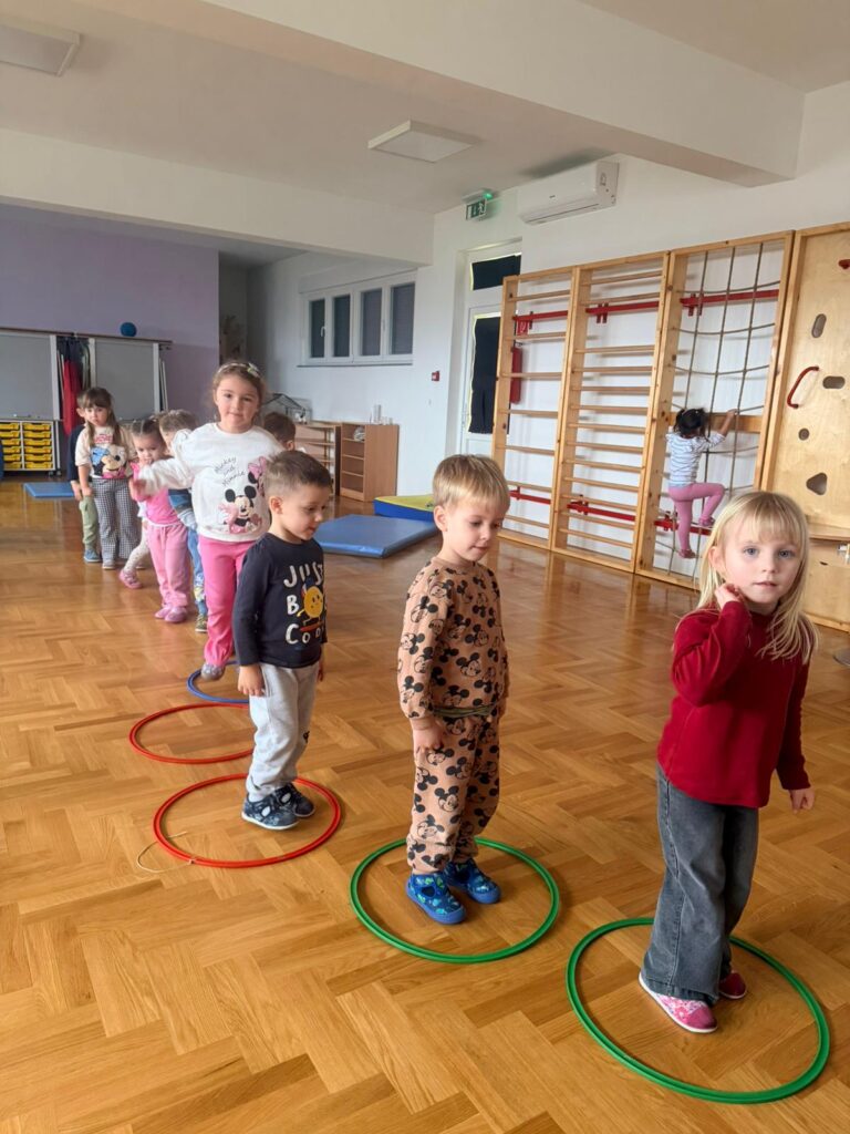 Vodeći se spoznajom da igra i sve aktivnosti vezane uz igru vrlo povoljno utječu na sve dječje organe i organske sustave- na razvoj motoričkih sposobnosti, funkcionalnih sposobnosti, pobuđuje ugodne emocije, pridonosi emotivnom pražnjenju što se pozitivno reflektira na dječji organizam, skupina “Zvjezdice” redovno i rado provodi tjelesne aktivnosti. Primjenjujemo igre kod kojih su sadržaj složenija kretanja, kao što su penjanje i silaženje, provlačenje, skokovi, kotrljanje. Socijalnu i građansku kompetenciju djeca razvijaju kroz međusobnu suradnju, pomaganjem, poštivanjem pravila, čekanjem na red, dogovaranjem.