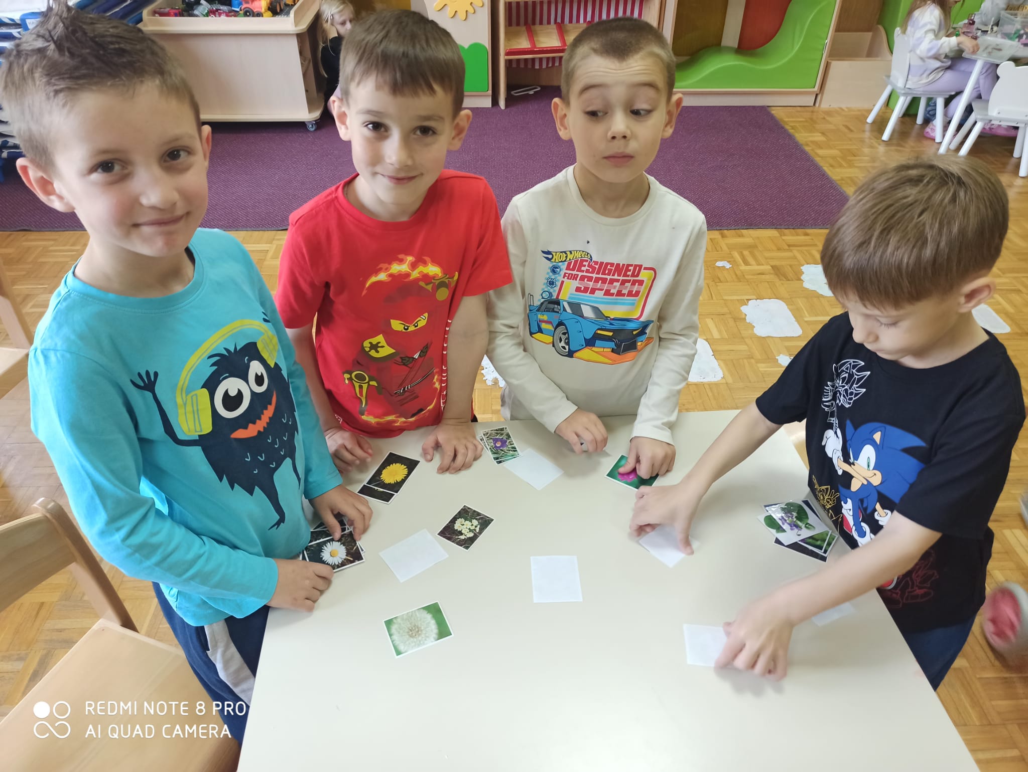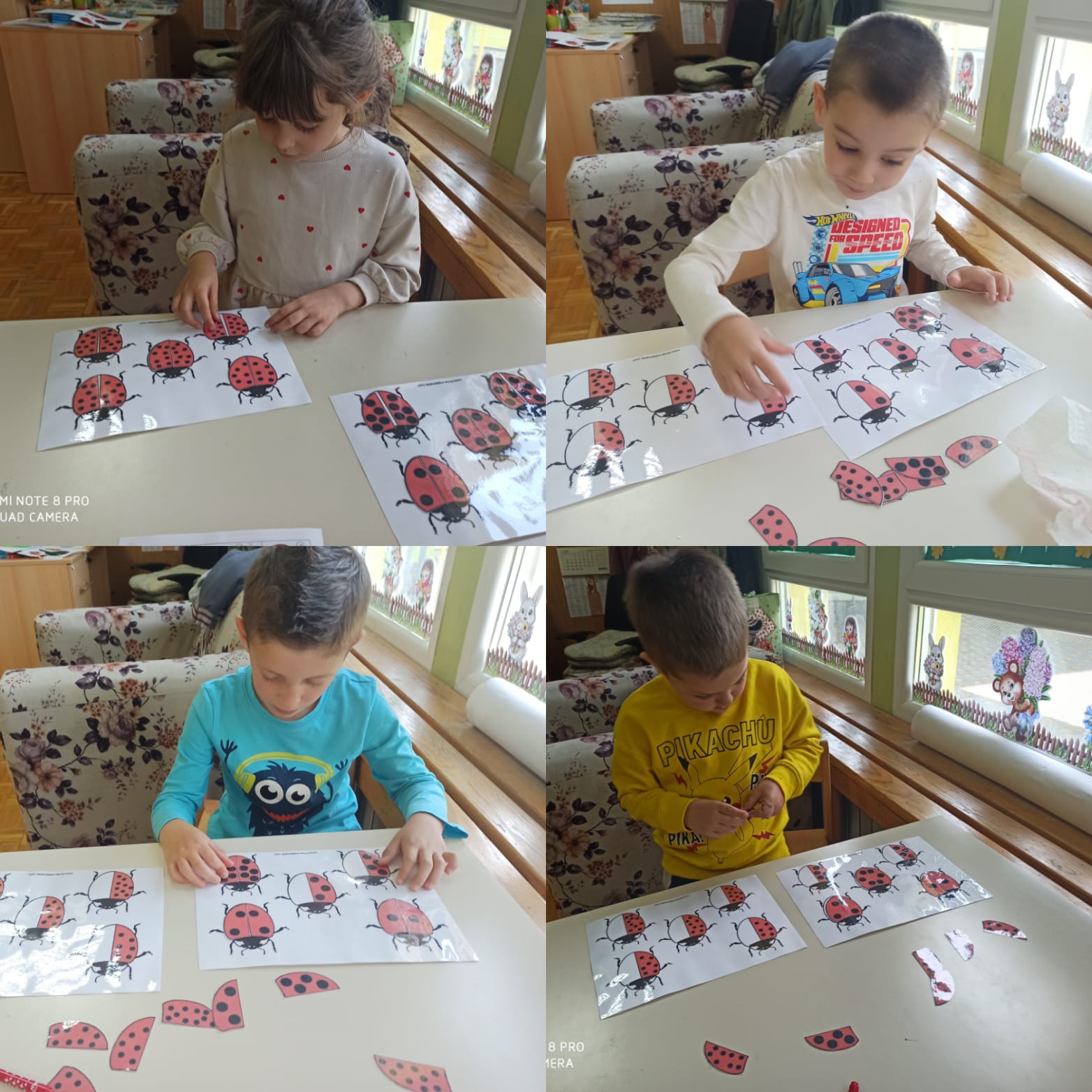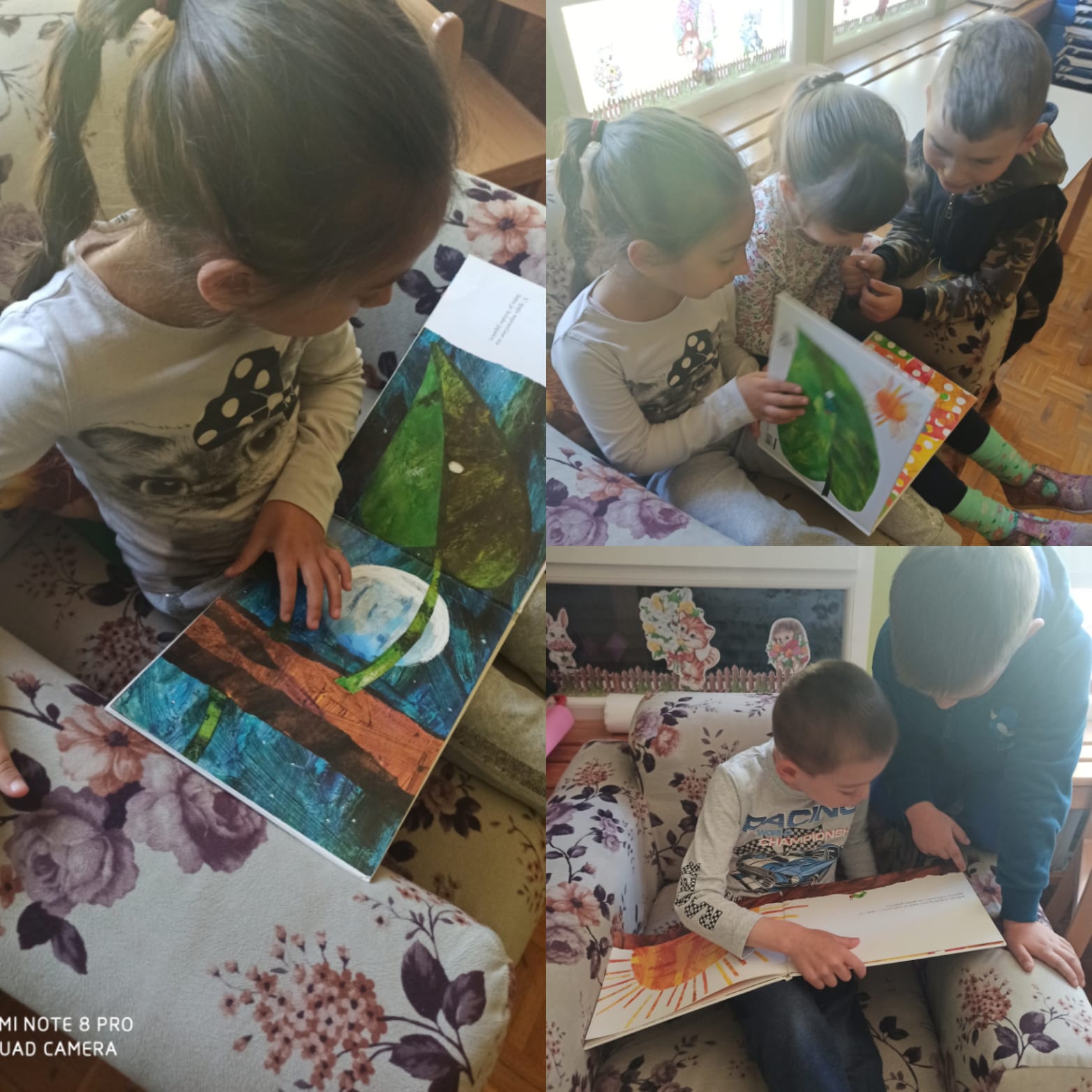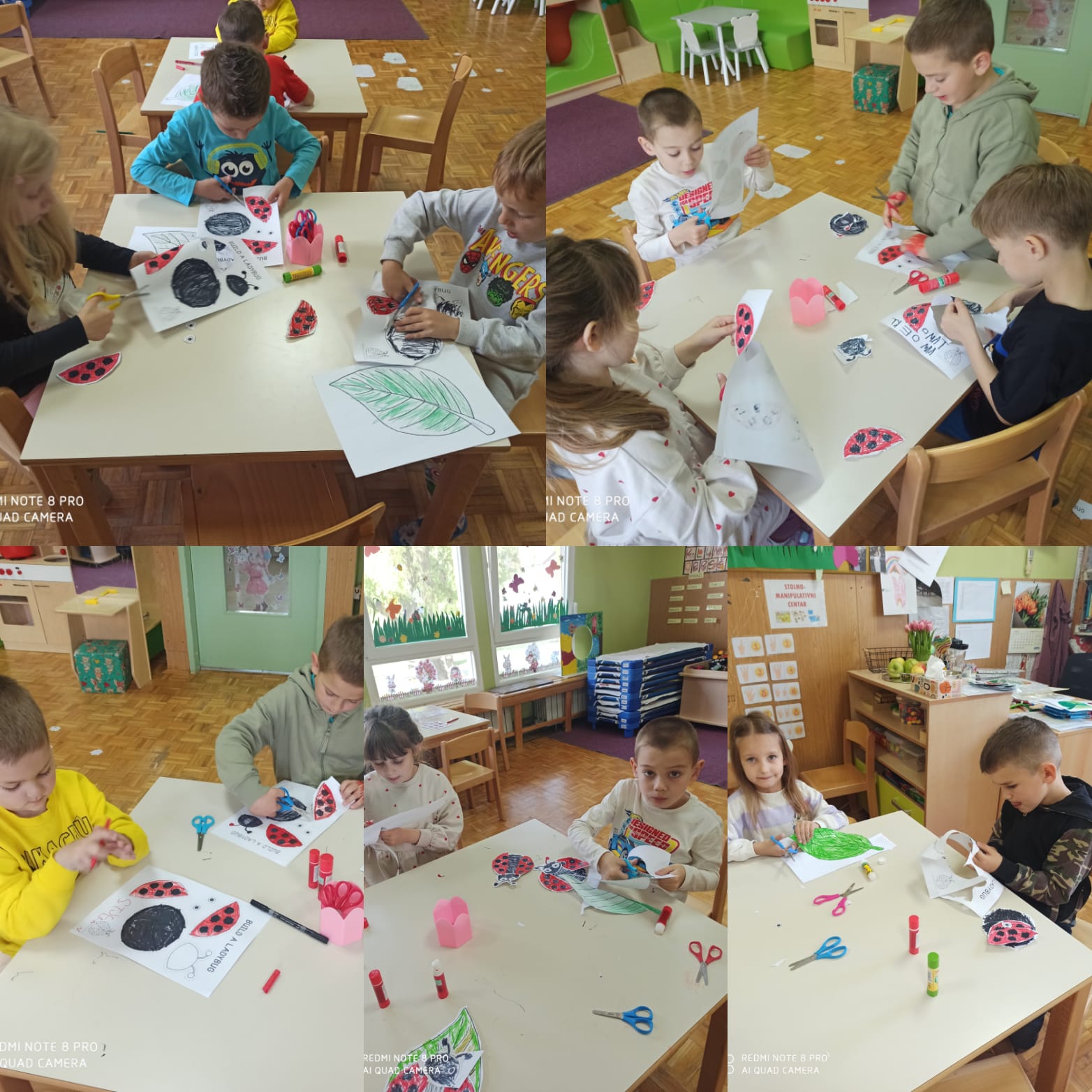 S dolaskom proljeća, započeli smo s aktivnostima na tu temu. Upoznali smo se s proljetnicama te krenuli učiti o kukcima (mravima, bubamari, gusjenici, leptiru). Važan poticaj nam je bila slikovnica “Vrlo gladna gusjenica” kroz koju smo učili o životnom ciklusu leptira, danima u tjednu, bojama i brojevima.