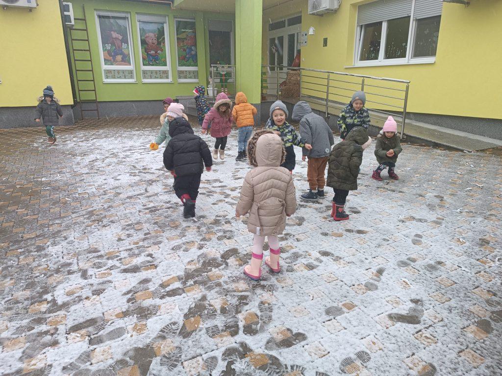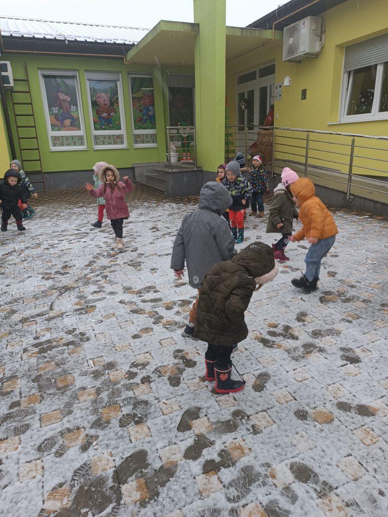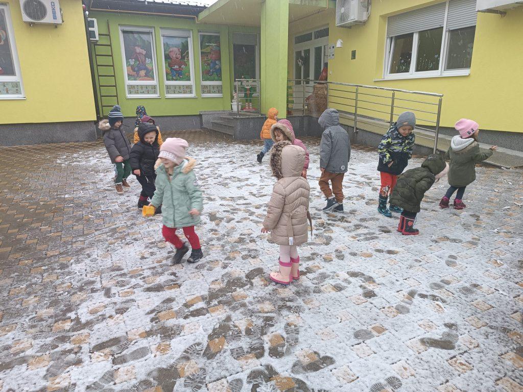 Leptirići su odlepršali na dvorište vrtića dočekati prve pahulje snijega. Veselju i uzbuđenju nije bilo kraja. Nadamo se da ćemo ove godine još imati prilike za jednog snjegovića.