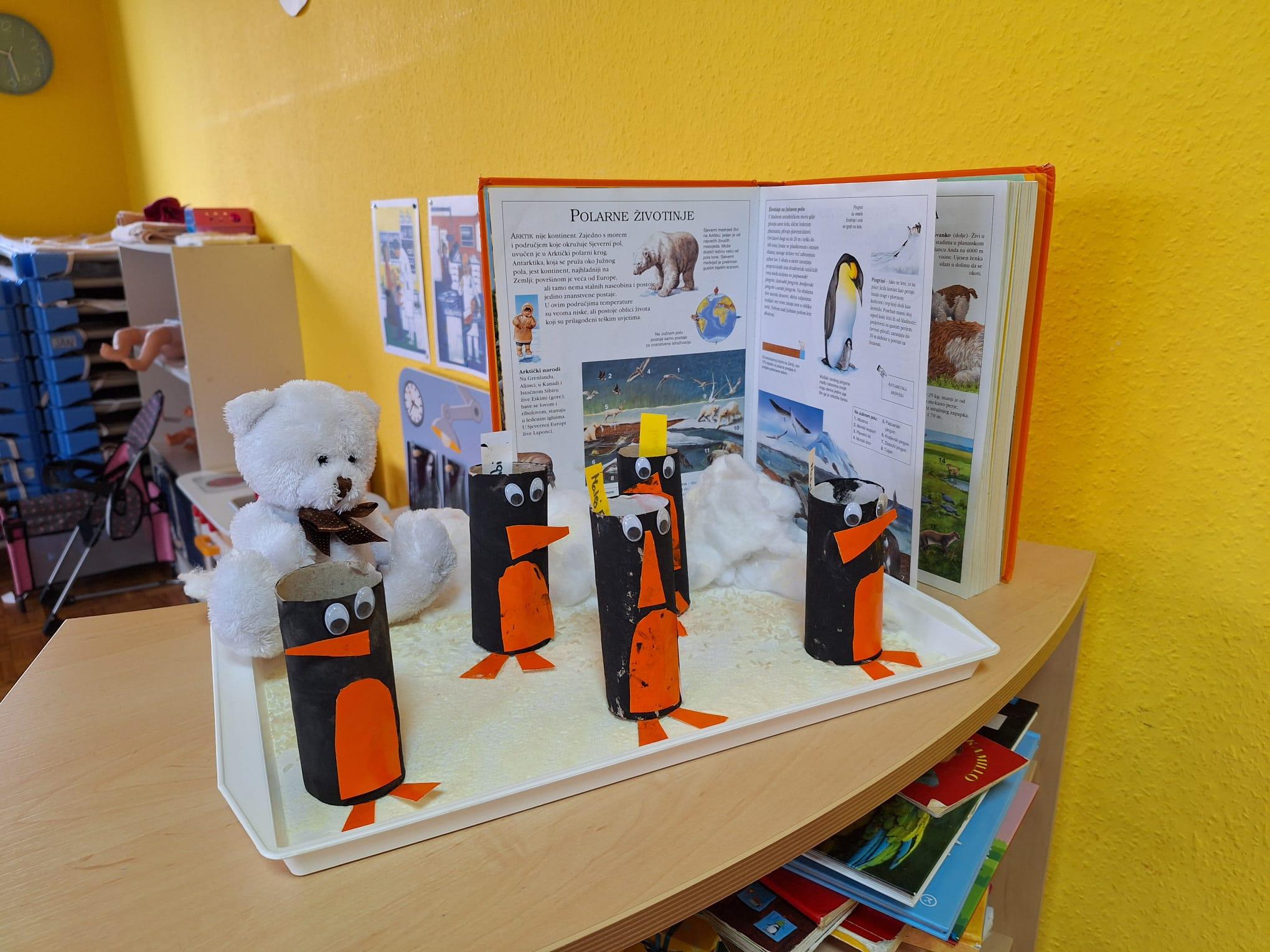 Skupina Ivančice je ovaj tjedan učila o temi “Polarne životinje”. IStraživali smo život polarnih životinja. Aktivnosti koje smo provodili su: zrada umjetnog snijega, promatranje polarne svjetlosti, pingvini. Odgojiteljica Mija Vinković