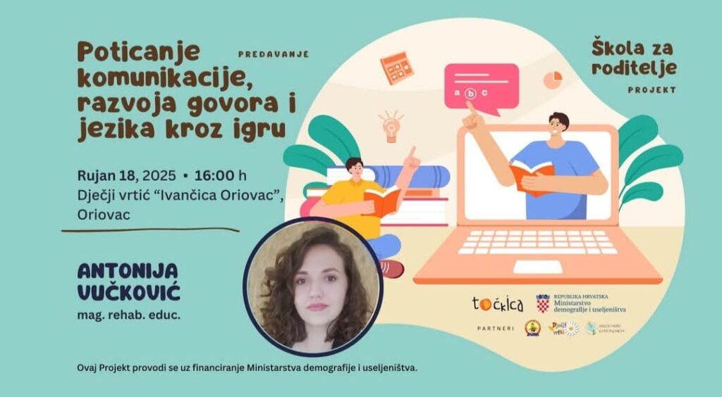 ➡Predavanje “Poticanje komunikacije, razvoja govora i jezika kroz igru” održat će Antonija Vučković, mag. rehab. educ.
