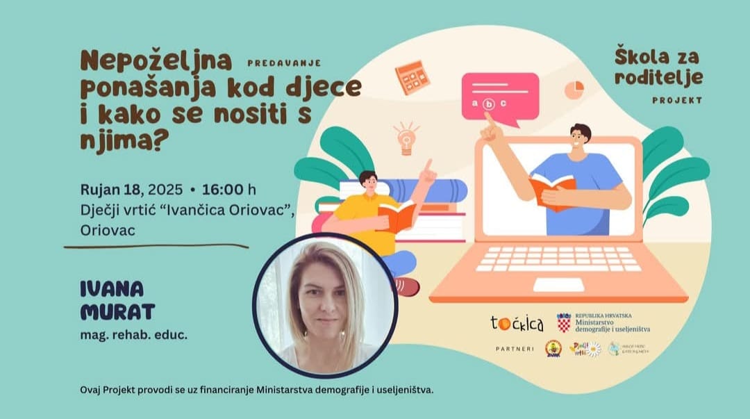 ➡ Predavanje “Nepoželjna ponašanja kod djece i kako se nositi s njima” održat će Ivana Murat, mag. rehab. educ.