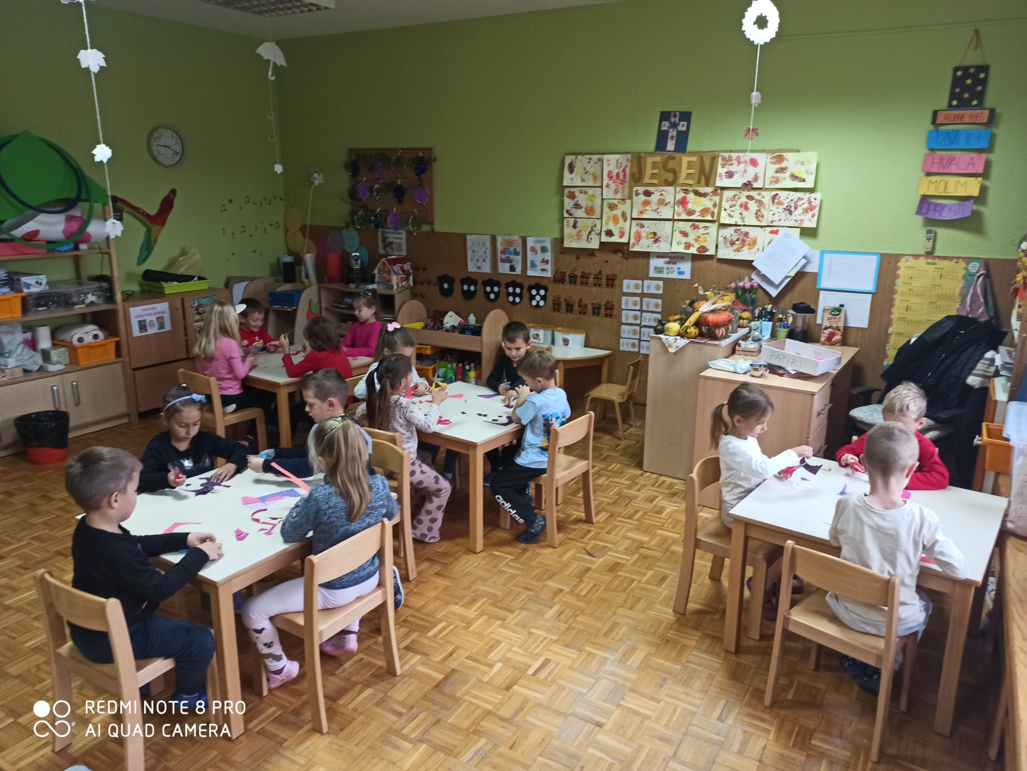 Leptirići su pedagošku godinu započeli s raznim aktivnostima na temu razvoja pojma o sebi, prijateljstvu i usvajanju pravila ponašanja u skupini. Zatim smo naše aktivnosti usmjerili prema jeseni (promjene koje se događaju u prirodi koja nas okružuje te jesenskim plodovima). Obilježili smo dane kruha zajedno s djecom iz drugih skupina, uređenjem crkve te pravljenjem kiflica u skupini. Također, obilježili smo dječji tjedan čija je ovogodišnja tema bila empatija. Zahvaljujemo se svim roditeljima na suradnji što su sudjelovali u donošenju jesenskih plodova.