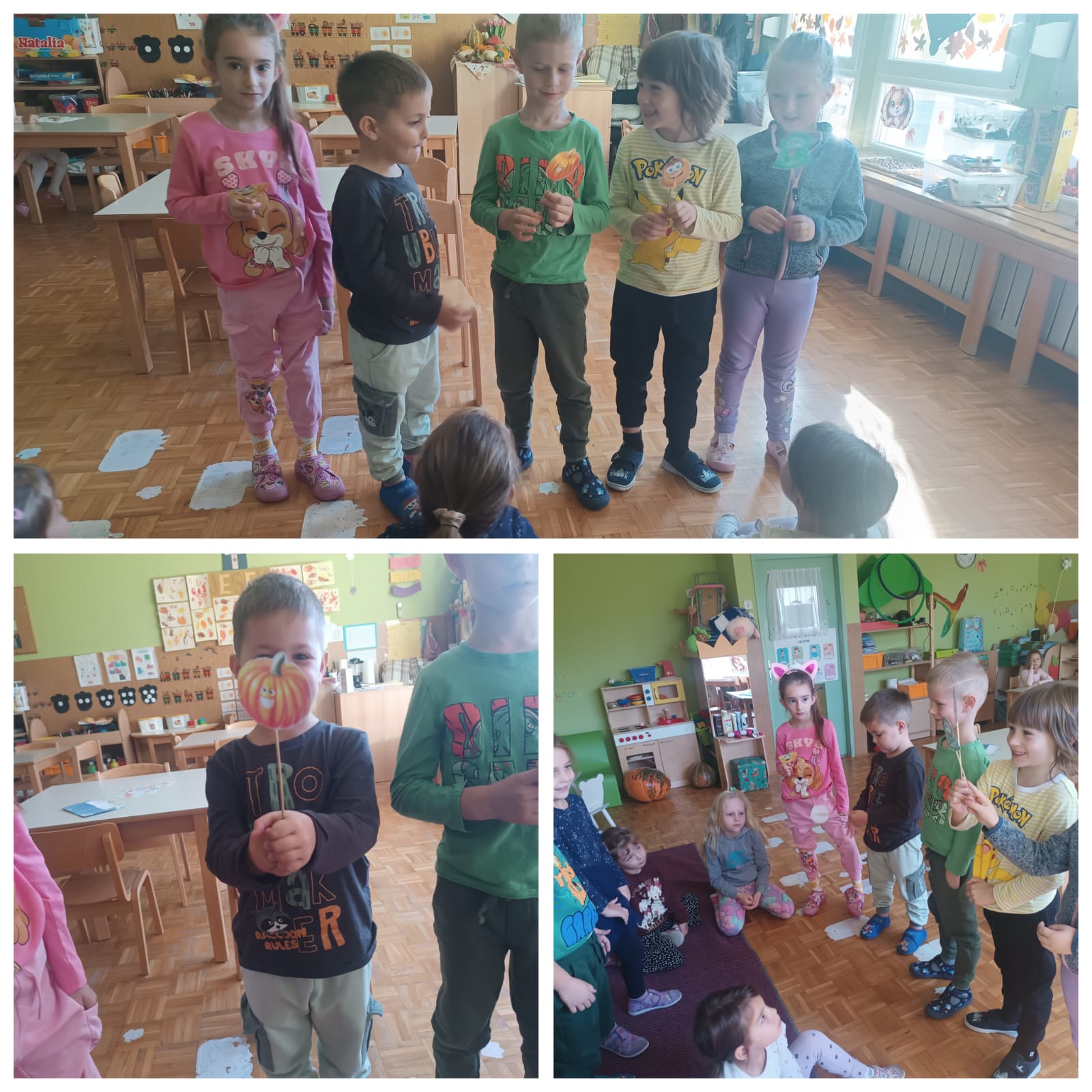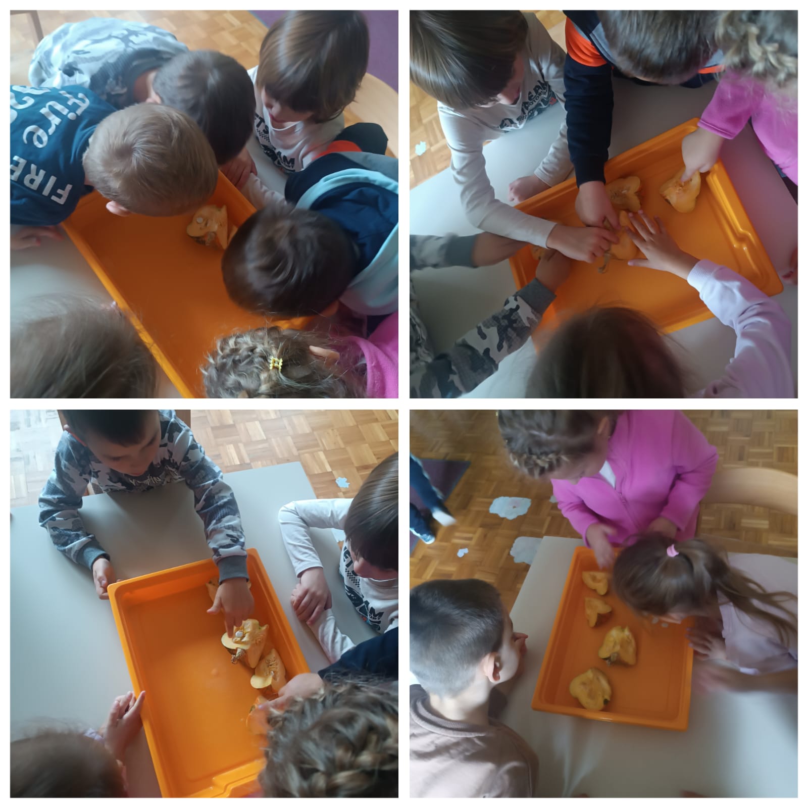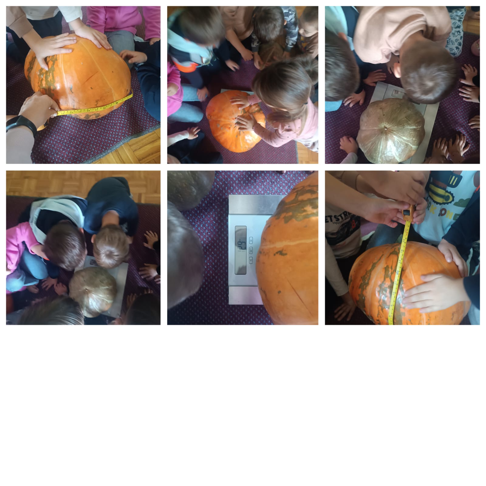 Naša Ana donijela nam je dvije velike bundeve u vrtić te su ih djeca krenula istraživati. Manipulirala su bundevom na nekoliko načina: vađenje koštica, presipavanje koštica, mjerili smo težinu, visinu, širinu, vagali smo tikvice. Samim time, djeca su razvijala koordinaciju i preciznost u baratanju predmetima, taktilnu percepciju, bogatili rječnik novim riječima. Štoviše, stolno-manipulativnim igrama poput klasifikacije prema boji i obliku, memory igrama te nizanju bundeva prema veličini djeca su razvijala operativno mišljenje te pamćenje. Igrokazom „Bundeva u vrtu“ te predstavom „Juha od bundeve“ potaknuli smo razvoj govora, vještine slušanja i razgovaranja te razumijevanja govornog sadržaja. Likovnim aktivnostima zaokružili smo našu temu lijepeći kolaž, oslikavajući temperom te tako potaknuli razvoj senzibiliteta za likovna sredstva i materijale.