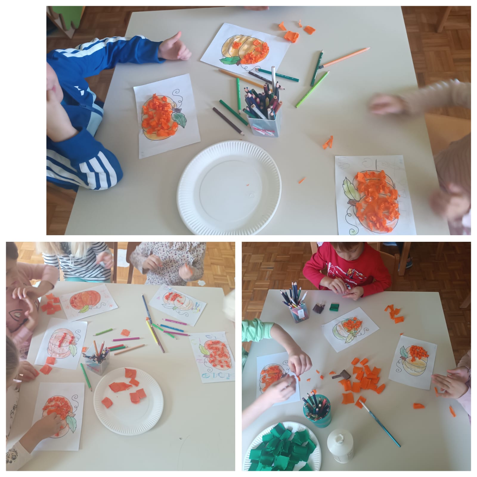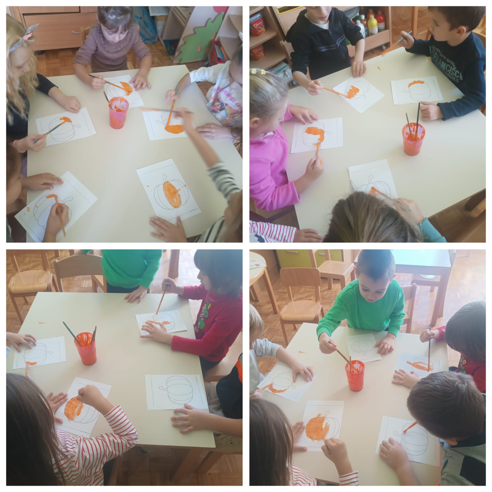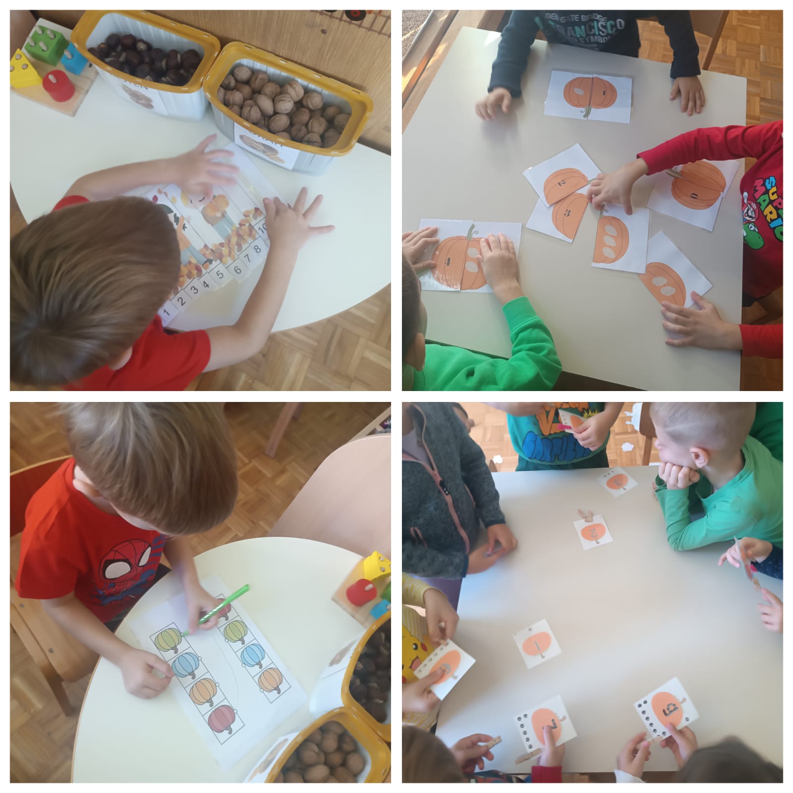 Naša Ana donijela nam je dvije velike bundeve u vrtić te su ih djeca krenula istraživati. Manipulirala su bundevom na nekoliko načina: vađenje koštica, presipavanje koštica, mjerili smo težinu, visinu, širinu, vagali smo tikvice. Samim time, djeca su razvijala koordinaciju i preciznost u baratanju predmetima, taktilnu percepciju, bogatili rječnik novim riječima. Štoviše, stolno-manipulativnim igrama poput klasifikacije prema boji i obliku, memory igrama te nizanju bundeva prema veličini djeca su razvijala operativno mišljenje te pamćenje. Igrokazom „Bundeva u vrtu“ te predstavom „Juha od bundeve“ potaknuli smo razvoj govora, vještine slušanja i razgovaranja te razumijevanja govornog sadržaja. Likovnim aktivnostima zaokružili smo našu temu lijepeći kolaž, oslikavajući temperom te tako potaknuli razvoj senzibiliteta za likovna sredstva i materijale.